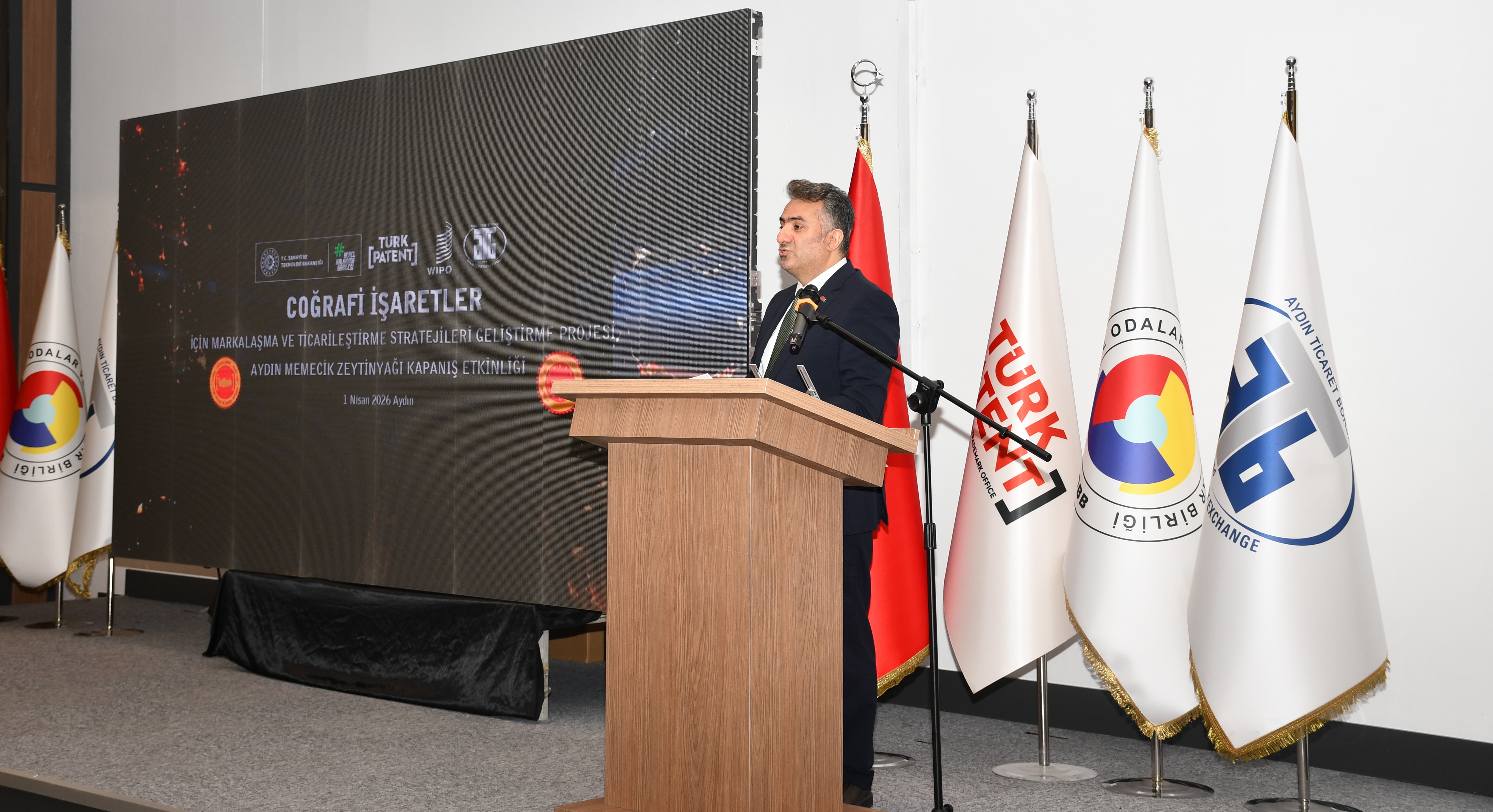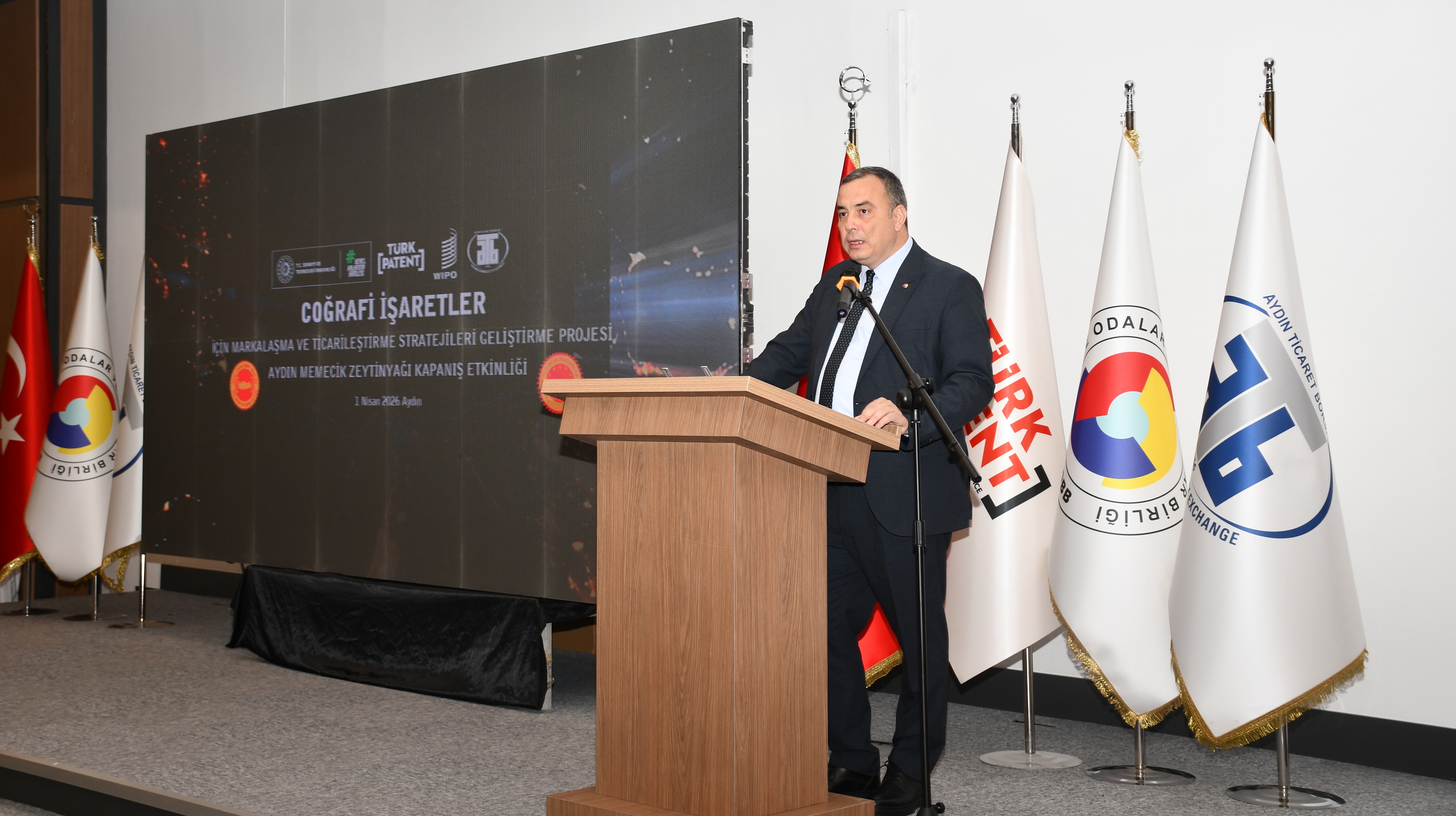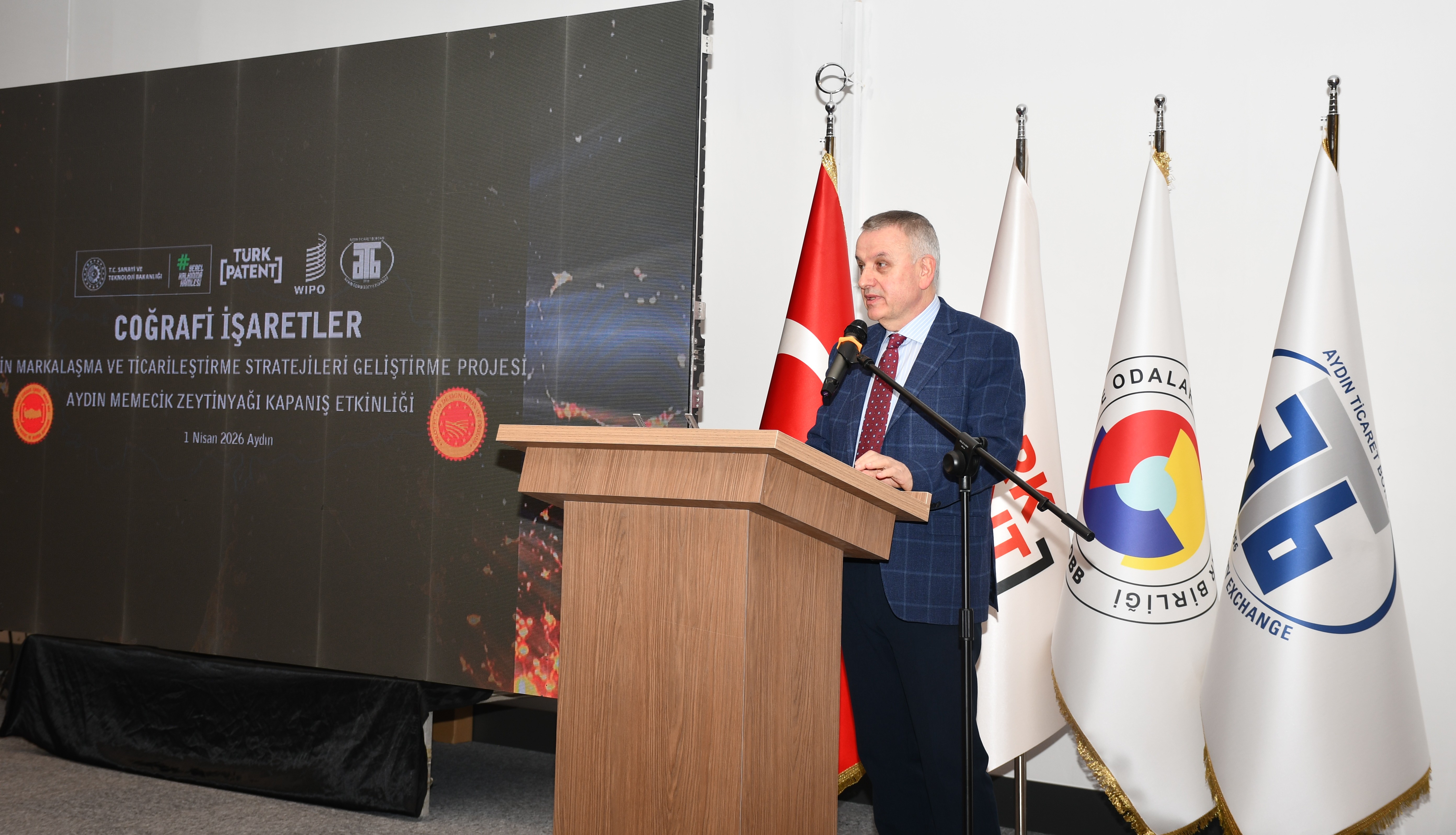 Açılış konuşmasını yapan Aydın Ticaret Borsası Yönetim Kurulu Başkanı Fevzi Çondur, projenin taşıdığı öneme değinerek, “Ülkemizin Avrupa Birliği nezdinde tescilli coğrafi işaretlerinin ticarileştirilmesi ve piyasa değerinin artırılması amacıyla Dünya Fikri Mülkiyet Örgütü ile Türk Patent ve Marka Kurumu iş birliğinde yürütülen ‘Coğrafi İşaretler İçin Markalaşma ve Ticarileşme Stratejisi Geliştirme Projesi’nin kapanış toplantısında sizlerle bir arada bulunmaktan büyük bir memnuniyet duyuyorum. Coğrafi işaretli ürünlerimizin yalnızca tescil edilmesi değil, aynı zamanda güçlü bir marka kimliği kazanarak ekonomik değere dönüşmesi günümüz rekabet koşullarında büyük önem arz etmektedir. Bu anlayışla Aydın Ticaret Borsası olarak sahip olduğumuz coğrafi işaretlerin tanıtımı, markalaşması ve ticarileşmesine yönelik çalışmalarımızı kararlılıkla sürdürmekteyiz. Borsamızın tescil sahibi olduğu Aydın Memecik Zeytinyağı’nın proje kapsamında seçilen ürünlerden biri olması ve Avrupa Birliği tescil sürecinin başarıyla tamamlanması bizler için ayrı bir gurur kaynağıdır. Bu proje sayesinde üreticilerimiz ve tüm paydaşlarımızla birlikte Aydın Memecik Zeytinyağı’nın hem yurt içinde hem de uluslararası pazarlarda daha güçlü bir konuma ulaşması adına önemli mesafeler kat ettik. Ürünlerimizin özgün niteliklerini tanıtarak katma değere dönüştürmeye yönelik yürüttüğümüz çalışmalar, kurumumuza önemli bir sorumluluk yüklerken aynı zamanda güçlü ve sürdürülebilir bir misyon da kazandırmaktadır. Bu vesileyle projenin hayata geçirilmesinde emeği geçen tüm kurum ve kuruluşlara, kıymetli paydaşlarımıza ve coğrafi işaret kullanıcılarımıza şükranlarımı sunuyorum” ifadelerini kullandı.