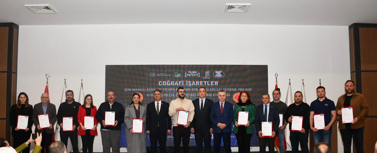 Aydın Ticaret Borsası ev sahipliğinde ülkemizin, Avrupa Birliği nezdinde tescilli coğrafi işaretlerinin ticarileştirilmesi ve piyasa değerinin artırılması amacıyla, Dünya Fikri Mülkiyet Örgütü (WIPO) ile Türk Patent ve Marka Kurumu iş birliğinde yürütülen “Coğrafi İşaretler için Markalaşma ve Ticarileştirme Stratejileri Geliştirme Projesi’nin kapanış toplantısı gerçekleştirildi.